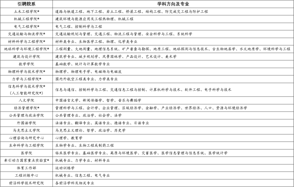 三、引聘学院及学科专业(*为交通运输一流学科建设支持学院)